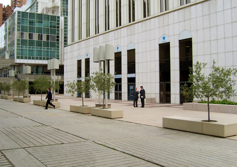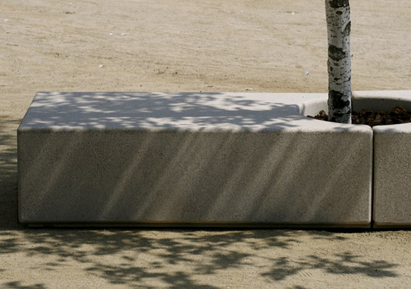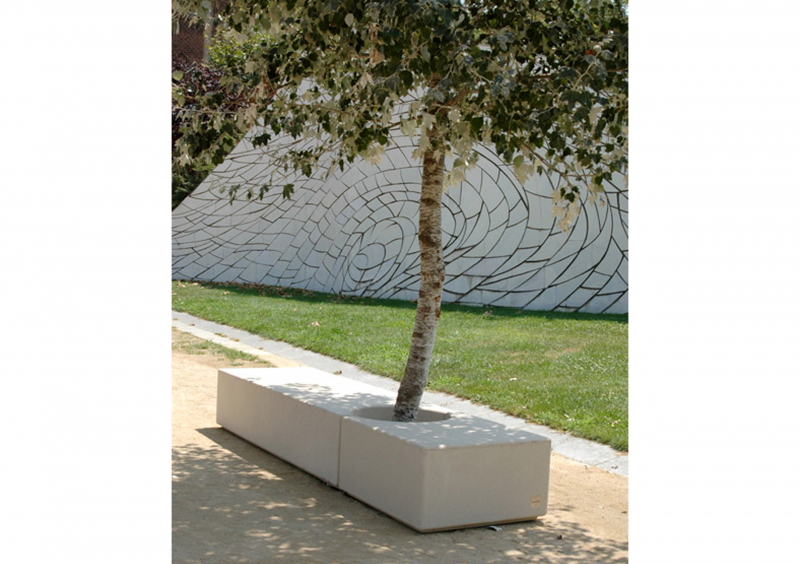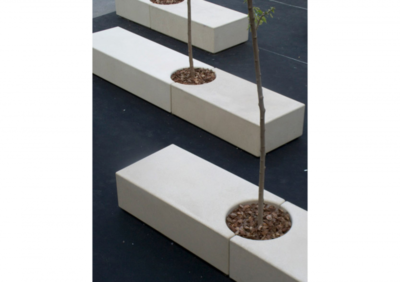 MAYO és una peça de formigó armat i de secció porticada. La simplicitat d´aquest banc radica en la seva geometria rotunda i pura. El seient perforat a la manera d’un escaquer permet l´adequada evacuació de l´aigua de pluja així com incrementar els efectes de la ventilació i disminuir la temperatura sota l´acció del sol. Els arquitectes Cruz-Ortiz van dissenyar aquest element urbà com a continuació del seu primer disseny amb Escofet, ABRIL; convertint-se en un clàssic de la col•lecció que es comercialitza amb igual acceptació a tots els països del món. Es fabrica i edita en dues mides. El desenvolupament posterior del model MAYO CIRCULAR va ser dissenyat amb la intenció de crear combinacions amb el banc de major grandària. Aquesta col•lecció forma part de la nova generació d´elements neutrals, abstractes i d´ús universal que finalment adquireixen la condició de vocabulari bàsic per a la construcció d´un llenguatge inexistent fins aquell moment. Són elements que s´expliquen per si mateixos. Focalitzen, puntuen, situen i ordenen l´espai. Es relacionen bé amb el terreny i amb el pla horitzontal. La col•lecció mostra la seva capacitat d´integració a l´entorn urbà sense imposar-se però, per la seva condició material, amb el desig de romandre. Són dissenys rigorosos i senzills en la seva formulació, però universals en la seva aplicació.