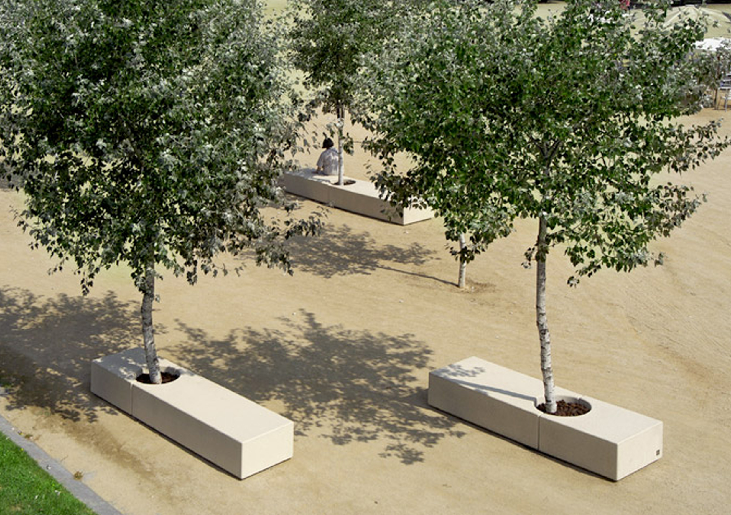GODOT és un banc de formigó armat que es construeix a través de la superposició de mòduls de diferents dimensions. L´element comú a cada una de les peces és un buit semicircular en un dels seus extrems. Aquesta perforació permet la disposició contigua dels mòduls i és la que crea un espai circular buit a l´interior del seient. Per tant, GODOT, a més de ser un banc, serveix com a pedestal que s´instal•la al voltant dels arbres. Això crea una composició on l´arbre creix i ressalta gràcies a l´abraçada del banc, al mateix temps que es converteix en una invitació al passejant per a que s´apropi i es diverteixi sota la verdor i l´ombra. El disseny del banc GODOT neix de la idea de crear una peça de mobiliari urbà que reflecteixi la dualitat o l´encontre de dues meitats sota l´ombra d´un arbre, com passa amb els personatges de Vladimir i Estragon a l´obra de teatre «Tot esperant Godot», de l´escriptor irlandès Samuel Beckett. En aquesta obra Beckett només ofereix una minsa referència a l´escenari: «Un camí en el camp. Un arbre. De tarde.» Així que díez+díez diseño i Escofet han agregat un banc a l´esmentat escenari amb la intenció de fer més còmoda l´eterna metàfora de l´espera.