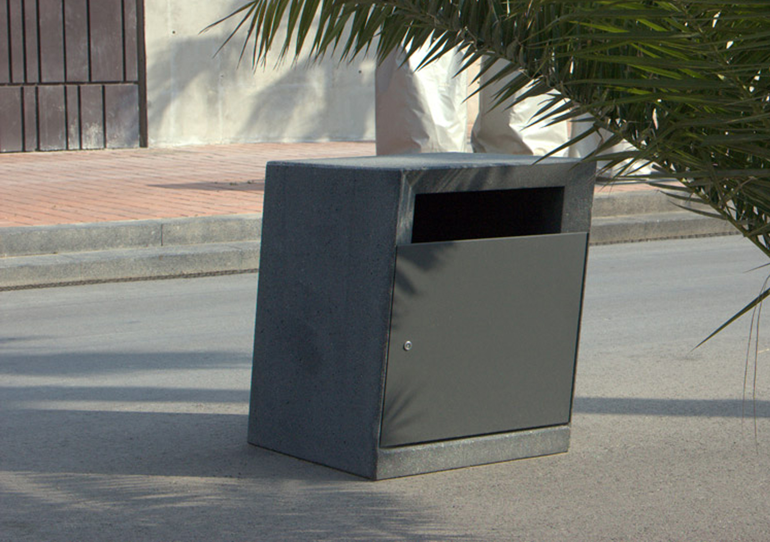 PEDRA NEGRA és una paperera que neix com a resultat d´un projecte de reflexió basat en definir un element tot adequant-lo al seu entorn natural (les platges de sorra negra de les Illes Canàries), i que adquireix la condició d´element de paisatge atemporal. PEDRA NEGRA cerca endinsar-se al paisatge, entendre´l i reinterpretar-lo per aconseguir que els elements siguin accidents del terreny, com un promontori de roca existent que es cisella donant resposta a les necessitats de l´entorn. L´aspecte material d´aquest element, que posteriorment va adoptar les diferents tonalitats del formigó tractat com a matèria pètria, és alhora el seu contingut essencial. En el paisatge, la paperera esdevé una fita hermètica, sense reflexos, construïda com a paral•lelepípede que s´enterra i que s´escora a la sorra, afectada pel moviment natural de l’arena. No necessita ancoratges ni fonamentació. Disposa d´una porta d´acer inoxidable pintat de negre fum que dóna accés a l´habitacle d´un contenidor de plàstic per a la recollida de residus. Es pot utilitzar amb o sense bossa. Aquesta peça va ser dissenyada pels arquitectes Antonio Montes i Enric Pericas juntament amb Escofet l´any 2002.